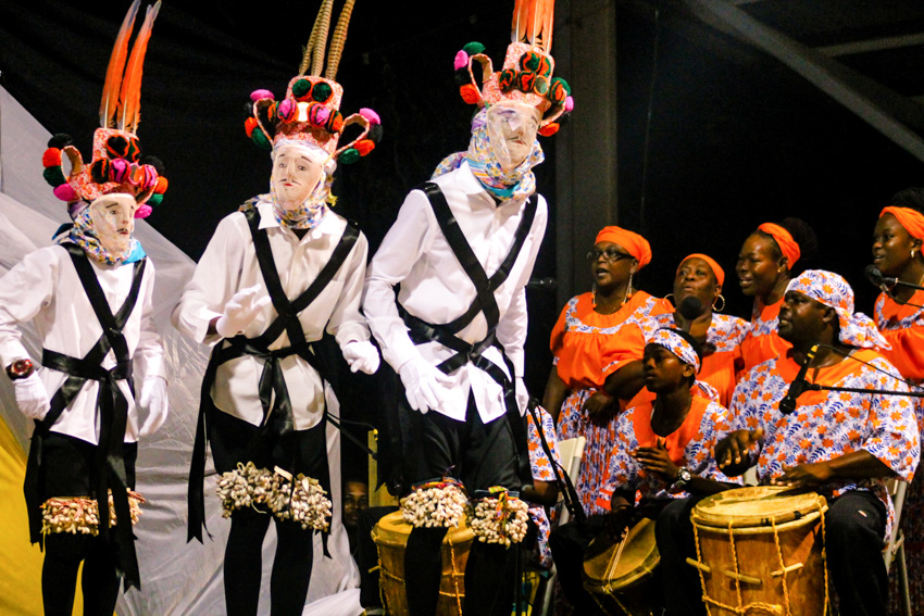 The Wánaragua is a favourite to showcase Garifuna culture. It is traditionally performed during Christmas. The dancers wear white masks and an intricate headdress and costume. This is the only music and dance where it is the dancer, who through his elaborate footwork, dictates how the drummer plays the rhythm.